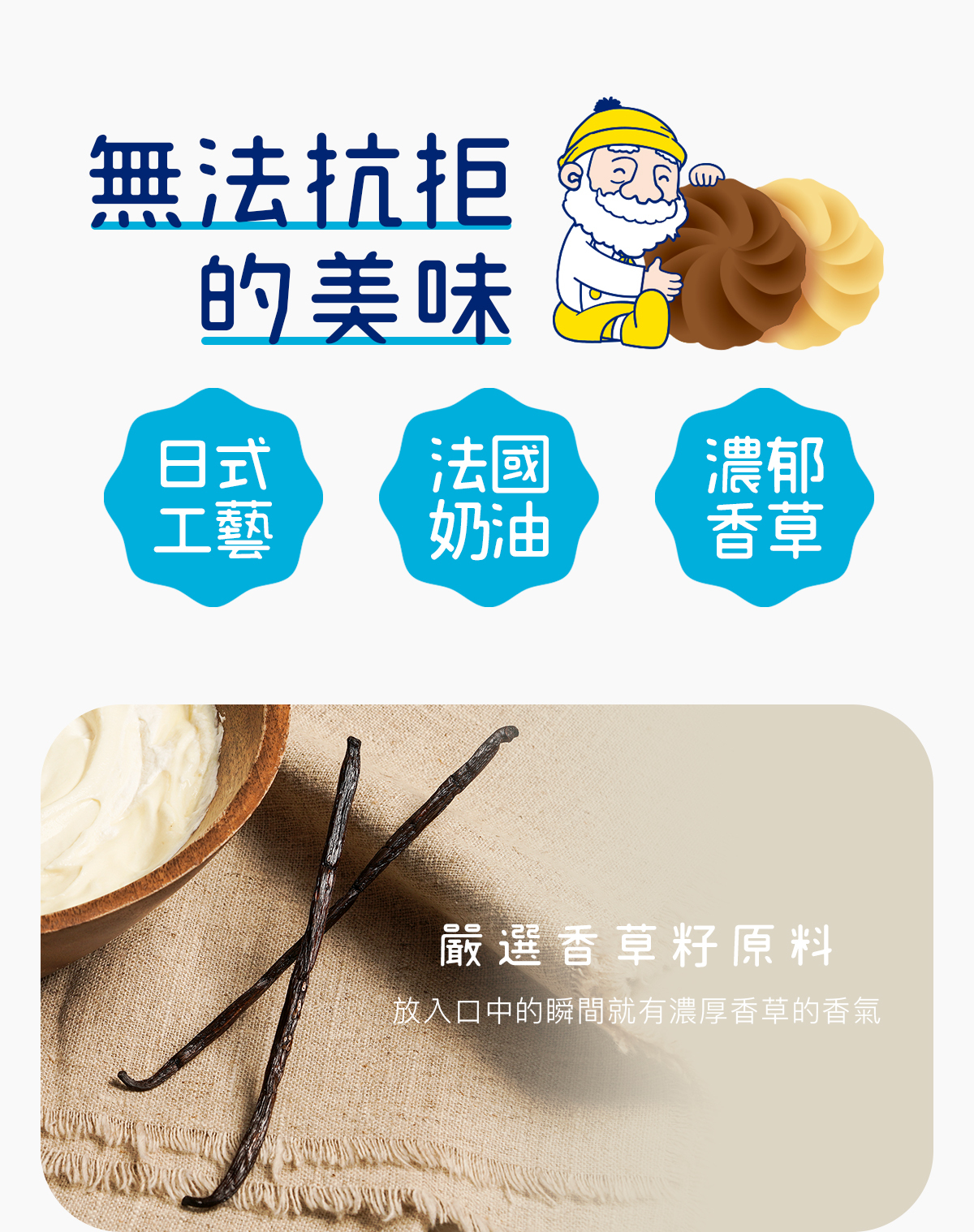 「香草曲奇餅乾」以經典口感為基礎經過精心製作,再現經典。